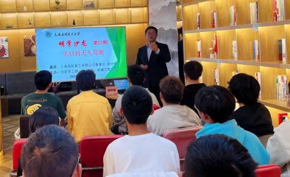 10月20日,由党委学工部主办、机械工程学院承办的第57期明学沙龙在我校奉贤校区26号楼学生公寓明学悦读体验中心举行,沙龙主题为“从AI到无人驾驶”。活动特邀上海港机重工有限公司董事长、高级工程师胡中望担任主讲人。