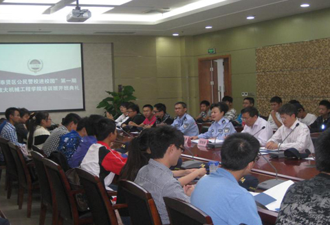 10月12日下午,奉贤区公民警校进校园第一期机械工程学院培训班开学典礼在我校图书馆B103举行。奉贤公安分局政治处副主任高梅香和学生处副处长翁德明出席活动。