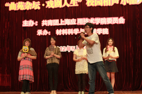 5月15日晚6点,第十一届校园文化艺术节暨社团文化节系列活动之“曲苑杂坛•戏剧人生”相声小品大赛拉开帷幕。本场比赛由校团委主办,材料学院承办,校团委书记韩磊、材料学院党总支副书记、副院长王占勇出席活动并为获奖同学颁奖。