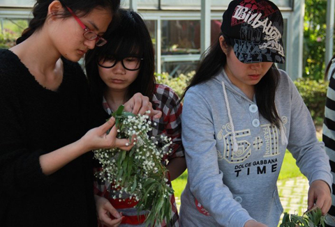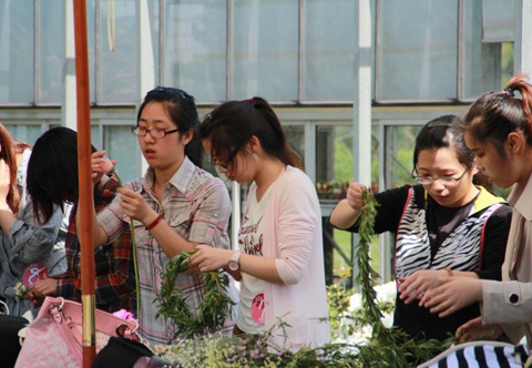 来自11个学院39支队伍参赛,经评委们严格选拔,17支队伍进入决赛。决赛当天,植物园花香四溢、笑声不断,选手们完全忘了比赛,沉浸在花环编织的乐趣中。母爱、春天、萤火虫、日出等一个个饱含感情的作品在同学们相知、互助、合作中美丽呈现。