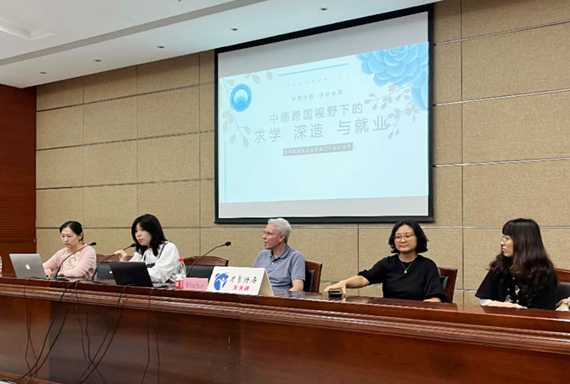 Heser先生与我院德语系教师们举行座谈交流,就德语专业学生语言学习、就业方向、留学前景等话题展开热烈讨论,Heser先生根据其数十年的中德经贸合作经验和对德国留学及劳动力市场的了解,对我院德语学生的学习和就业提出建设性的意见和建议。Heser先生从德国的教育制度、德国的社会情况、中德之间的合作往来、中国学生在德国的机遇前景等四个方面展示了中德经济文化合作的广阔前景。