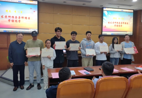 会上,李以贵为录取到本校读研的2023届理学院学子代表颁发了“考研指导学长导师”聘书。希望2024届报考的学生,要主动向师长、学长汲取考研的经验和指导,避免走弯路,坚定备考的恒心和毅力,顺利完成“考研战”。叶璟通过往年报考人数、录取比例等数据为学院学子分析了2024届毕业生考研面临的严峻形势,对学子们如何报考、备考进行了专业的指导。王凤超介绍学院物理学科招生相关内容及综合实力,鼓励学子们报考理学院研究生。