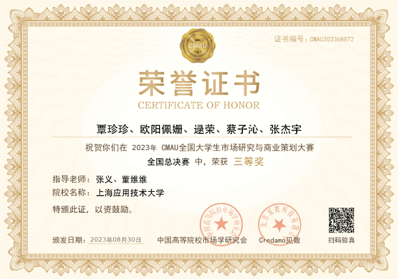 参赛队以“钻金你心”中国黄金培育钻石的全链路营销策划为主题,通过文献搜索、问卷调查、数据处理与分析、实地调研等,以新视角、新思路完成了案例分析,最终完成了中国黄金的市场研究报告和商业策划方案。 此次大赛培养了学生参与企业市场调研与商业策划的专业技术与实践能力,为将来个人就业与职业发展打下良好基础。经管学院高度重视学生创新创业能力与综合素质的培养,以及学科竞赛在专业人才培养中的价值和作用,坚持以学科竞赛为重要抓手,强调以赛促学、以学促行,助推我校人才培养质量的提升。据悉,比赛覆盖了全国400多所高校,31个省、自治区、直辖市,报名人数达到了25688人,有2000余支队伍提交了作品,获得了国内越来越多高校的师生们高度的认可。