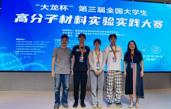 7月21日,第三届“大龙杯”全国大学生高分子材料实验实践大赛全国总决赛在福建福州落下帷幕。本届大赛历时5天,共有来自四川大学、东华大学、北京化工大学、上海应用技术大学等59所高校、近400名师生进入决赛。材料科学与工程学院贾润萍教授、施宇涛老师率队参赛,高分子材料方向杨发成、李拓和袁中富三位同学分获二等奖1项、三等奖2项。