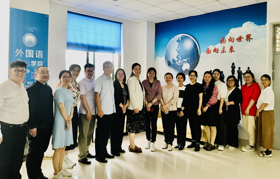 潘智丹代表学院对兄弟院系的来访表示热烈欢迎,并就外国语学院的组织架构、学科设置、教学科研成效、人才培养、校本特色发展、未来布局等情况作了详细介绍。