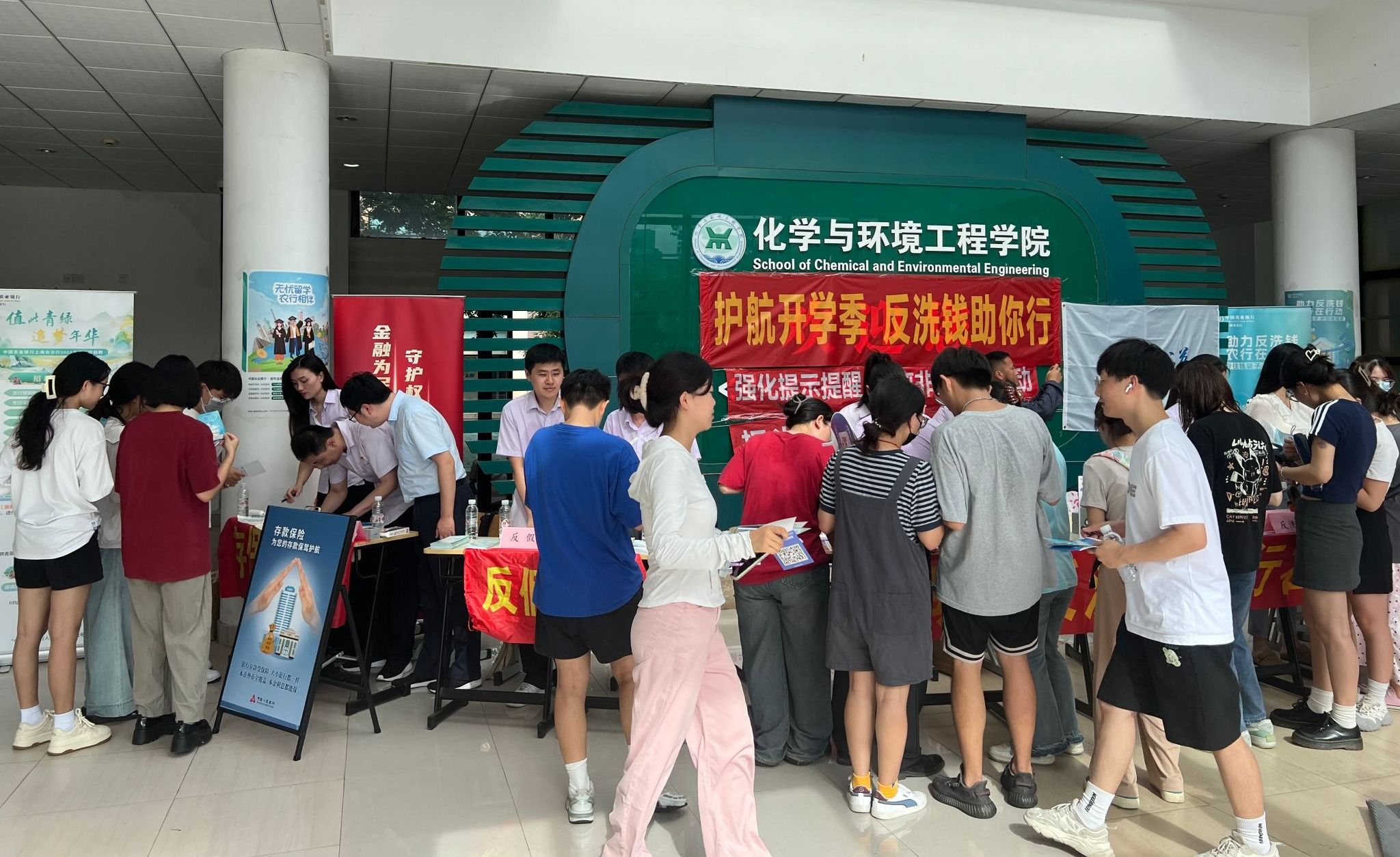 为深入强化校园安全防线,提升师生对电信诈骗等金融风险的防范意识,近日,化学与环境工程学院携手中国农业银行奉贤支行、区财政局、高校派出所等多家单位组成知识宣讲团在奉贤校区第三学科楼大厅开展集中宣传活动。化工学院党委书记毛东森,化工学院院长胡晓钧,农行奉贤支行党委书记、行长王诚,分行内控合规监督部成员等共同参与活动。
