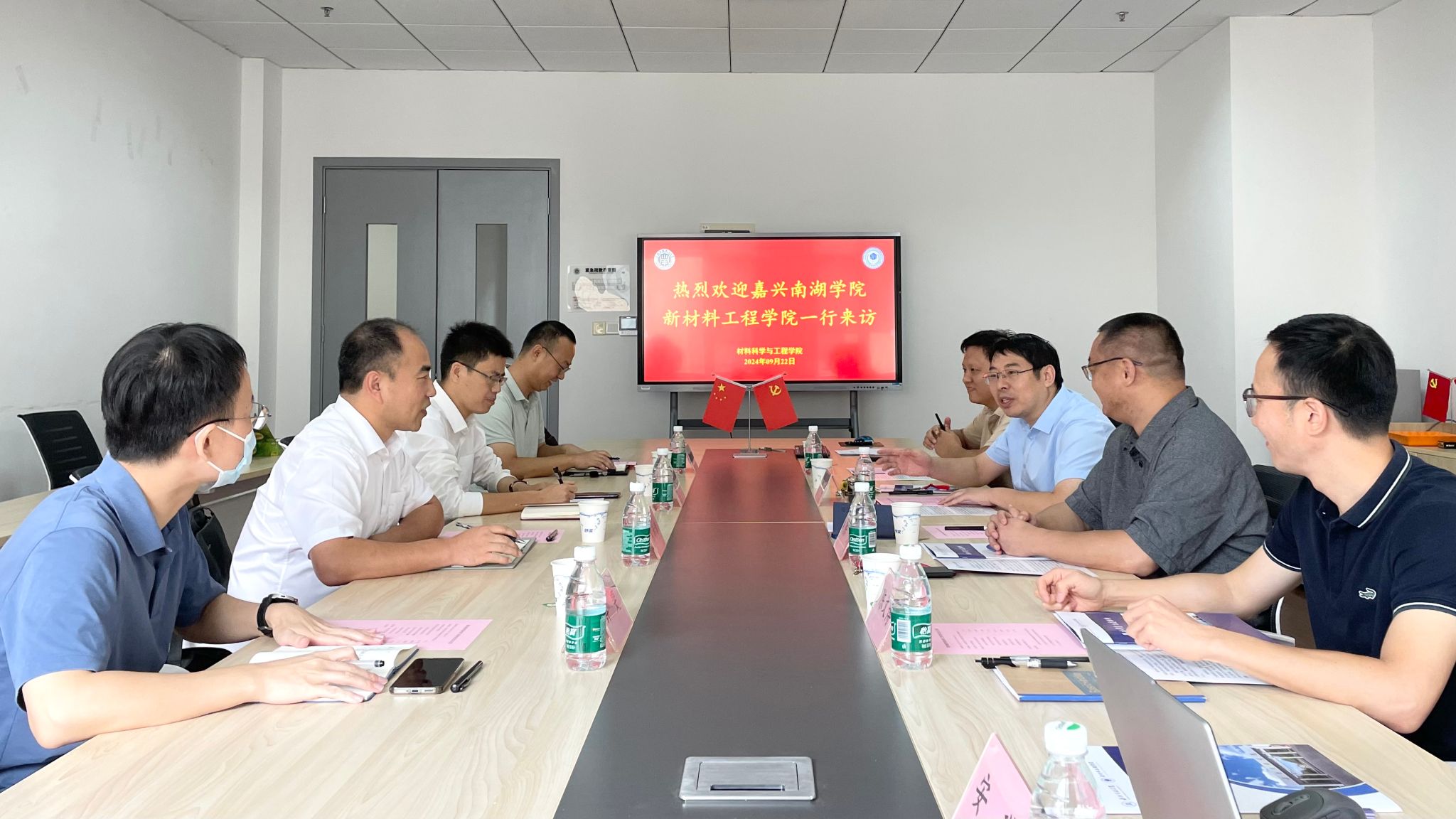 9月22日,嘉兴南湖学院新材料工程学院党委书记郝涛、副院长孙诗清一行来访材料学与工程学院,洽谈合作事宜。材料学院党委书记陈勇、院长杜永等热情接待。
