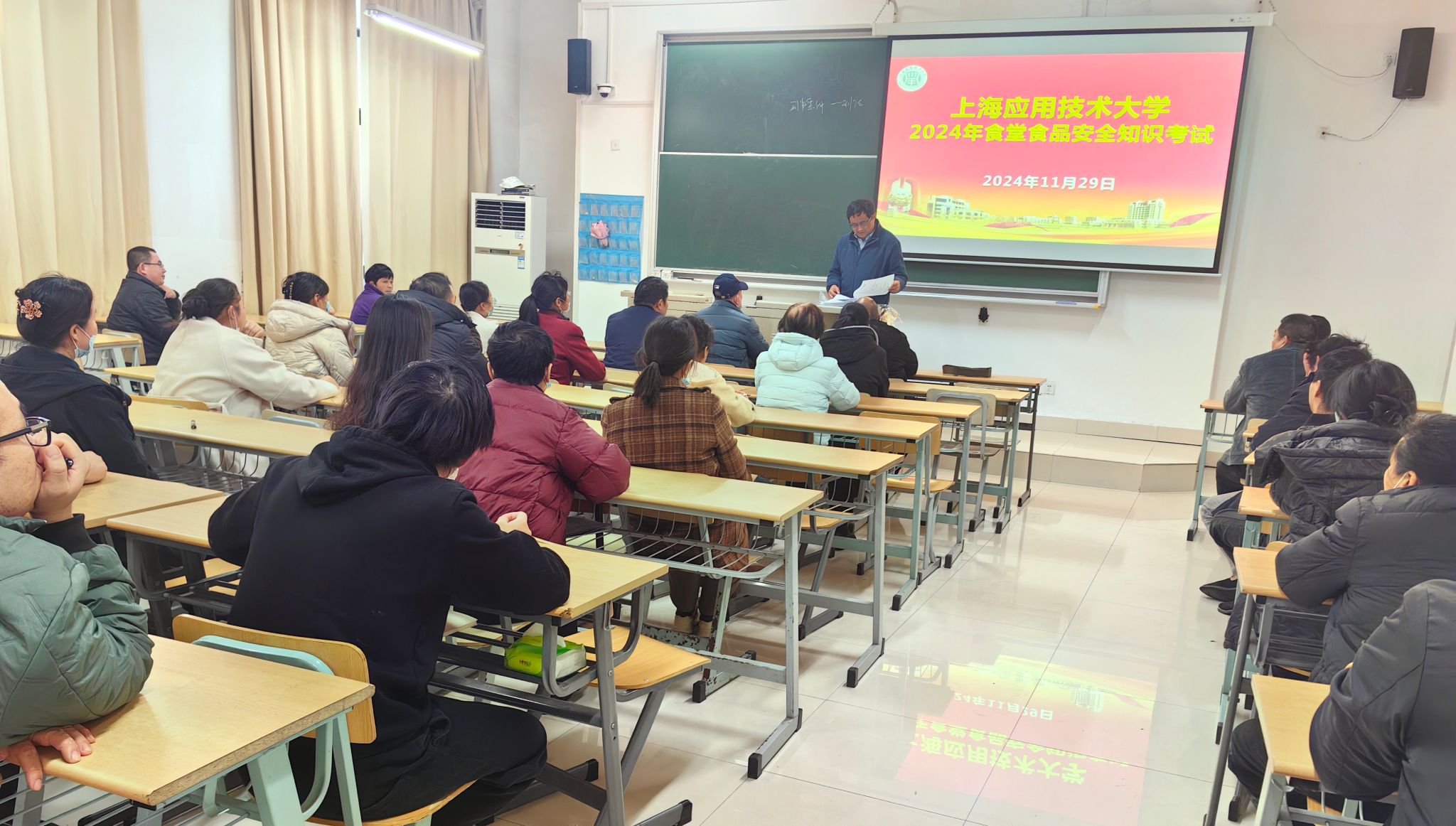 为进一步加强学校食品安全监管,提升食堂从业人员的专业能力和安全意识,确保广大师生的饮食健康,近期,学校组织食堂岗位技能竞赛之食品安全知识考试暨颁奖仪式。校工会副主席王乐全、后保中心副主任孟建良出席。
