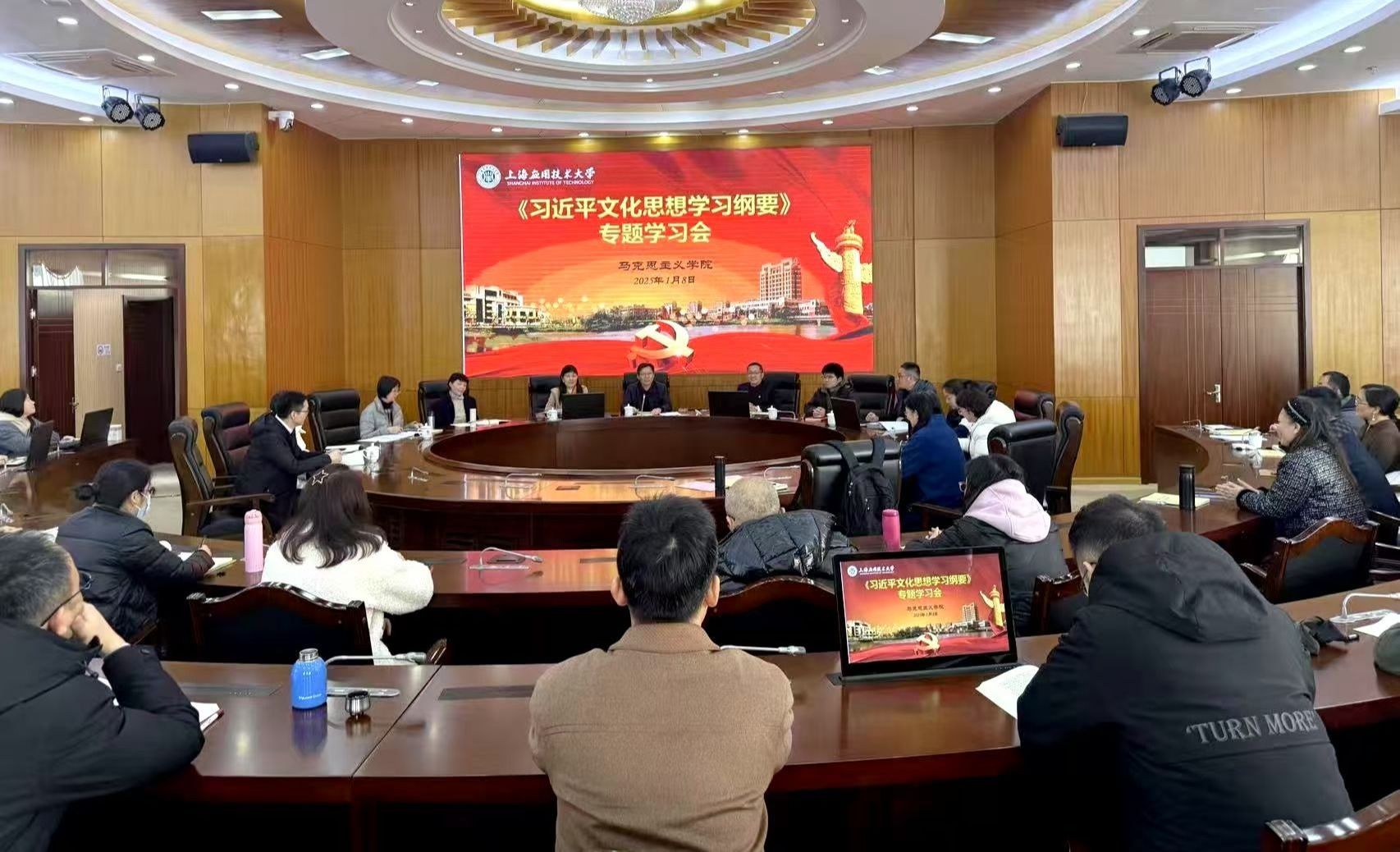 为进一步加强学院建设与发展,深入学习习近平文化思想,近日,马克思主义学院举行教职工代表大会暨《习近平文化思想学习纲要》专题学习会。会议由学院党总支书记邱杰主持。