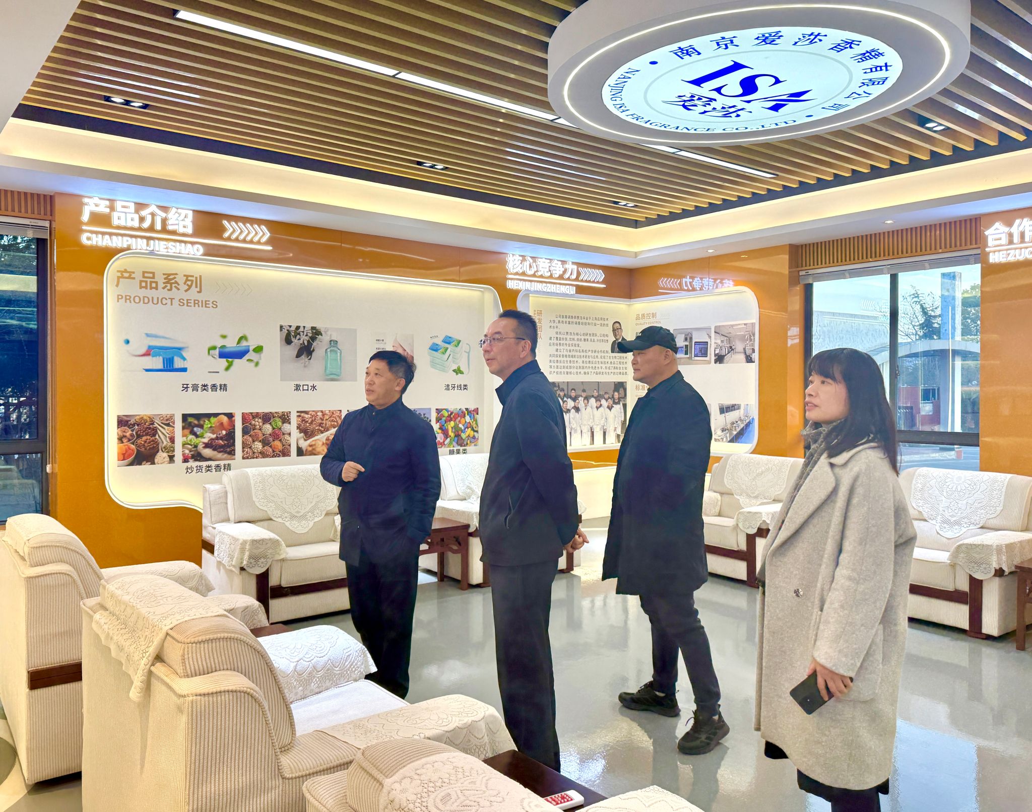 1月17日,党委学生工作部部长袁翔一行前往南京爱莎香精有限公司走访开展访企拓岗促就业专项行动。南京爱莎香精有限公司董事长黄素萍、总经理冯峰、副总经理贾浩(我校1990届校友)热情接待。