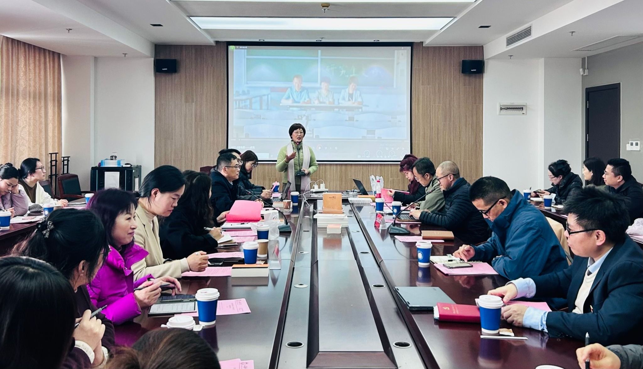2月24日下午,外国语学院党政班子、党支部书记、校公共基础课程思政教学研究分中心成员一行赴上海大学——上海高校思想政治理论课名师工作室“顾晓英工作室”调研学习。上海大学教务部副部长、课程思政教学研究中心负责人顾晓英教授,上海大学理学院课程思政中心主任刘见礼,上海大学课程思政名师工作室主持人马亮,桑茂林,戴朝晖,杨小明等出席,分享交流课程思政教学和实践研究的丰富经验成果。我校党委教师工作部副部长吴晶晶、理学院部分课程思政骨干教师一同随行参加。