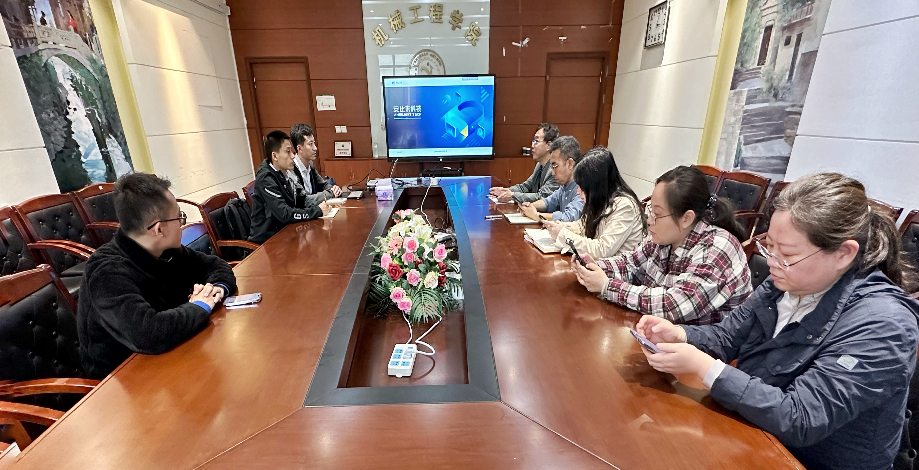 4月19日,上海安比来科技有限公司总经理、产品总监唐凯和上海东富龙智能工程有限公司三维部门负责人、技术总监张全一行来访我院。校友发展和联络处处长陈静、机械学院党委书记杨瑞君、副院长张珂,机械、化工学院部分教师出席座谈会,就虚拟仿真技术的应用开发进行了交流。