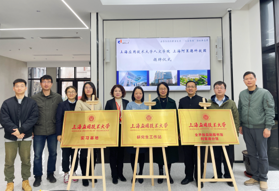 双方共同为“上海应用技术大学研究生工作站”“上海应用技术大学实习基地”“全开放自助图书馆阿莱德分馆”揭牌,张向前代表学院向平珏颁发“创新创业导师”和“研究生实践导师”聘书。本次走访调研是学院落实校企合作、推进产学研深度交流和学生高质量就业的重要举措之一。下一步,人文学院还将加快推动人才与企业双向交流,加强校企多方联动,培养更多高素质应用型人才。