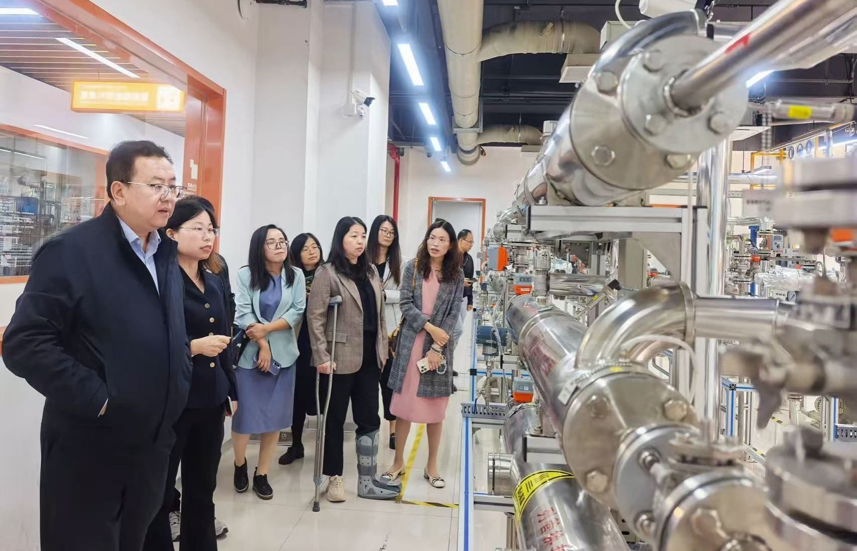韩生一行实地参观了化工国家级实验教学示范中心,刘平围绕实验中心的建设布局、课程体系设置、实验队伍建设及管理制度保障等方面,详细介绍了其在基础环境改造、资源共享、教学融合等方面的先进经验与成效。