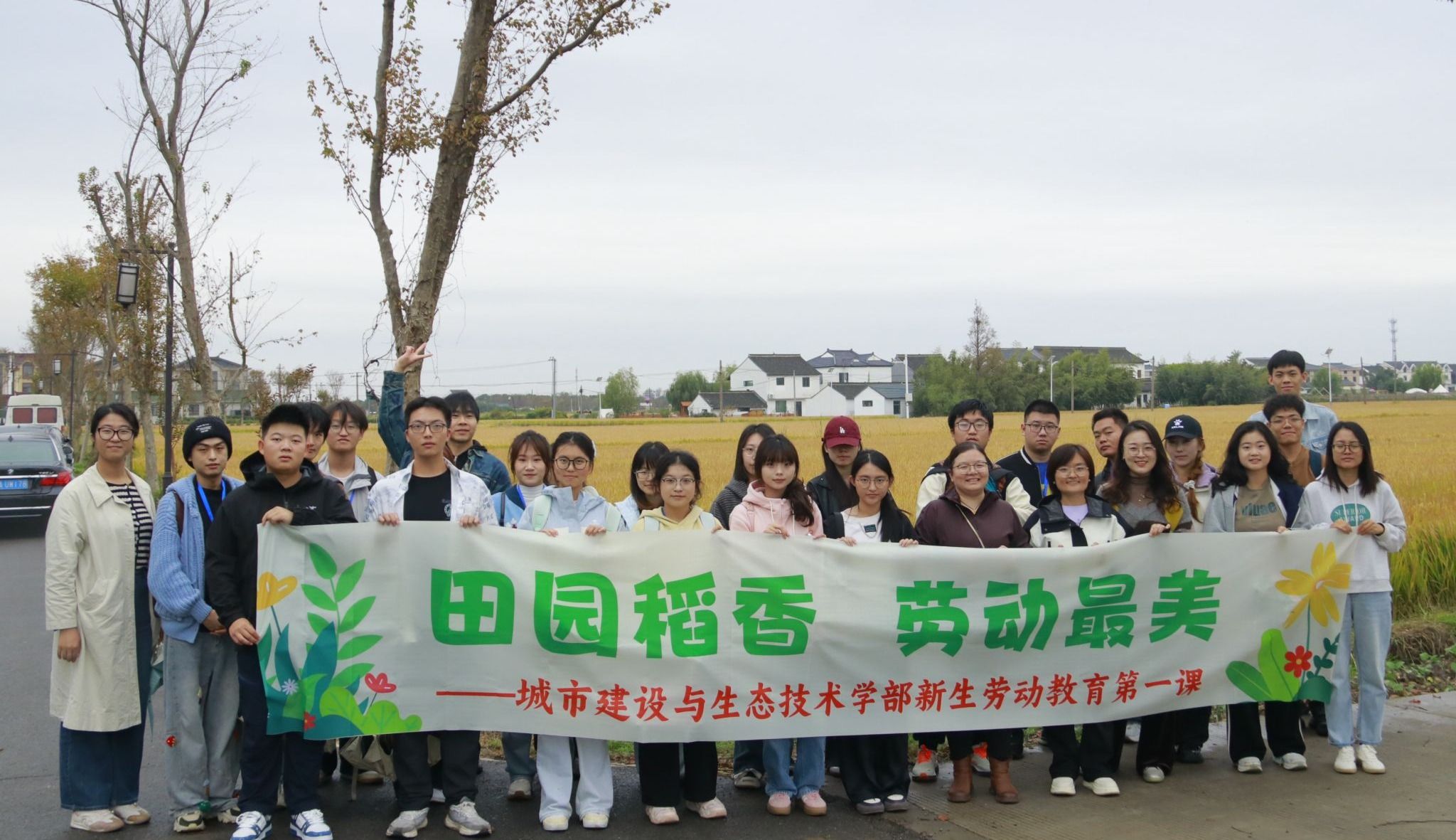 为弘扬劳动精神,引导学生崇尚劳动、尊重劳动,近日,城市建设与生态技术学部生态技术与工程学院组织40余名2025级新生,前往奉贤区李窑村开展了以“乡村稻香,劳动最美”为主题的新生劳动教育第一课。学部生态学院党总支副书记任玉英参加活动。
