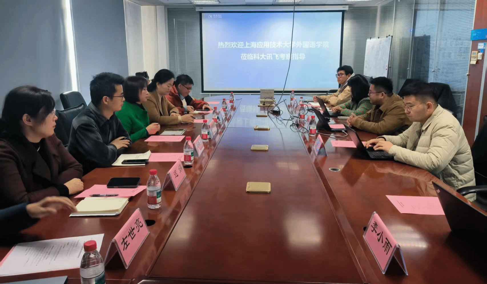 为深化产教融合实效,推动AI与外语学科融合发展,推进复合型外语人才培养与学生实习就业合作协同发展,11月19日,外国语学院党政班子一行赴科大讯飞开展访企拓岗专题调研,科大讯飞AI资源部渠道总监成程、聆智产教融合研究院课程设计负责人朱光吉、聆智产教融合研究院中级校园运营经理詹丽君等相关负责人参加座谈交流。