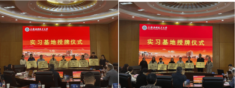 会议现场还举行了产教融合实习实践基地授牌仪式,为近期与学部签订协议的上海市农业科学院园艺研究所、上海华工安全技术服务有限公司等14家企业集中授牌,会上还举行了企业捐赠仪式。