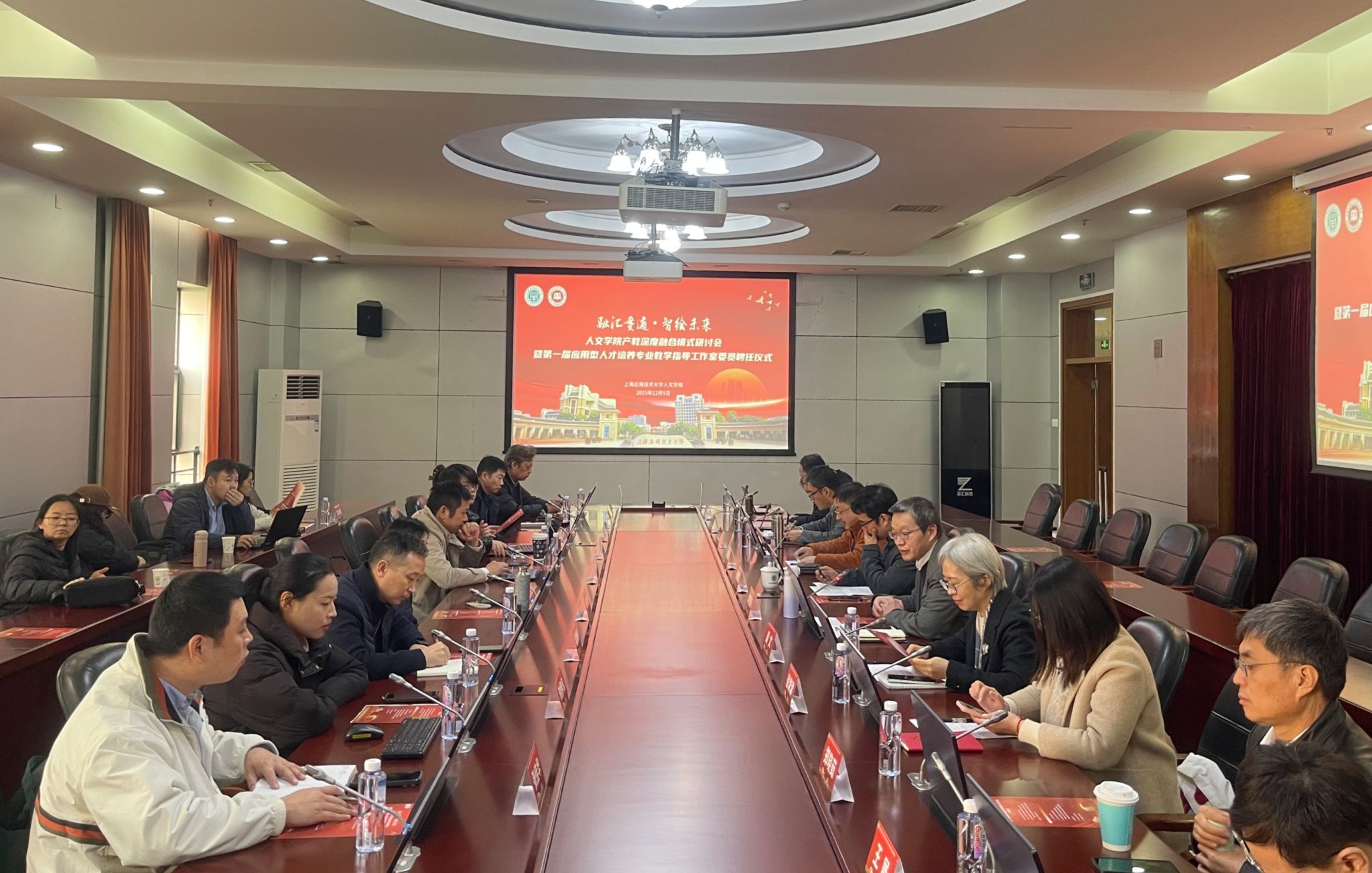 为进一步深化教育综合改革,落实学校“四双四改”人才培养综改精神,探索产教深度融合新模式,12月5日,人文学院召开“融汇贯通・智绘未来”产教深度融合模式研讨会。来自国药康养实业(上海)有限公司、上海浦东新区善行公益服务中心 、上海海国文化(集团)有限公司、维希艾环保新材料(上海)股份有限公司、东方明珠新媒体股份有限公司等数十位行业企业代表与学院领导班子、各系主任及教师代表齐聚一堂,共商产教融合新路径,共绘人才培养新蓝图。