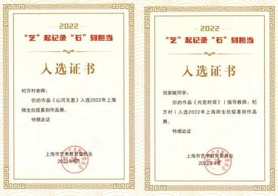 日前,在2022年上海师生抗疫篆刻作品征集活动中,我校师生篆刻作品成功入选。