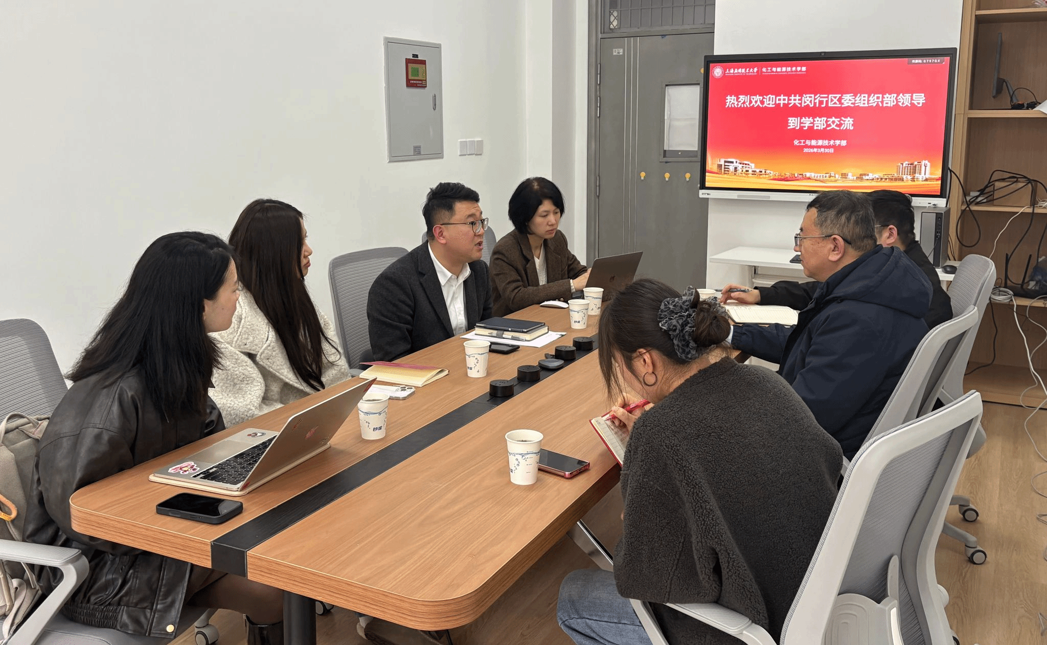 3月30日,闵行区委组织部、区高服中心主任褚春荣一行到访化工与能源技术学部,对韩生教授团队的项目产业化进程展开深入调研,并开展政策宣讲和解读。“海聚英才”创业学院运营负责人黄煜,运营总监盛颖雯陪同交流。