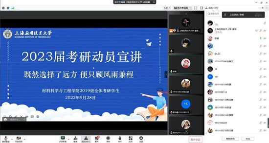 近日,材料学院线上召开2023届毕业生考研动员大会,学院副院长田甜,党委副书记、副院长李婉主讲,就考研报名、考研相关政策以及注意事项作详细解读。学院专任教师代表、毕业班辅导员及2023届全体考研学生参会。