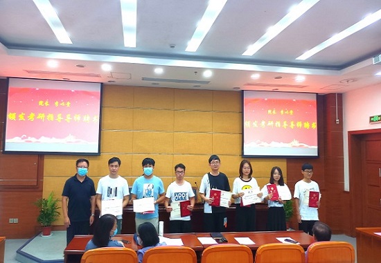 李以贵为录取到本校读研的部分2022届理学院学子颁发学长兼职考研指导导师聘书,希望已录取研究生的学子发挥“传帮带”作用,为2023届毕业生考研路途助力,共同成长。他鼓励同学们积极报考研究生,在考研院校、导师、专业的选择上要科学理性,在最后三个月的备考关键时期中要劳逸结合,保持好“备战”中的韧劲和坚强意志。他表示,学院全体老师是同学们坚强的后盾,一定尽全力为大家做好备考保障工作。