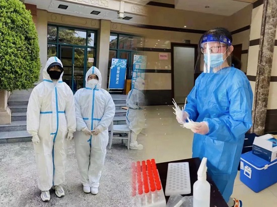 教工党员积极服务社区防疫。学院副书记、副院长朱菁在小区承担着消杀楼栋的任务,肩背重达40斤的消毒水一次次细致认真进行消毒,在这样特殊时期,楼栋每一户居民都团结一心,亲如一家。吕频捷老师负责12幢楼道居民400余份抗原测试剂的发放、回收和记录检测结果工作,主动帮助老年人采样检测,并耐心细致地教会他们检测方式和后续登记方法。她表示,共产党员不仅是一个称号,更是一种责任。