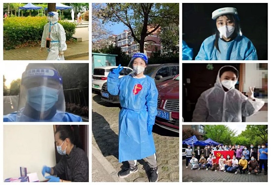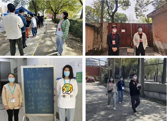 学院教工党员赵慧、孙立强、孟军、吴斐、萧亮、周丹丹、王卓、陈琦等老师们积极参与社区一线疫情防控工作,他们化身“大白”“小蓝”,投身到所在社区核酸采集、物资捐赠与发放、垃圾清运、快递发放、文案制作、互助帮扶等志愿服务工作中,在社区亮身份、做表率,诠释着共产党员的使命担当,为阻击疫情贡献师者力量。