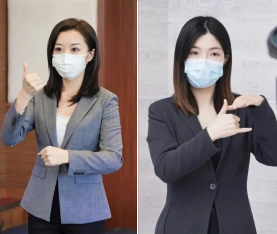 萧亮、陈伊佳两位教师担任上海市新冠肺炎疫情防控新闻发布会现场手语翻译工作,他们用翻飞的手指帮助上海听障人士实时“收听”新闻,展示了上海的城市温度和人文关怀,展现了上应人的责任与担当。她们的事迹受到《人民日报》、央视新闻、《文汇报》、《青年报》等多家媒体的报道。