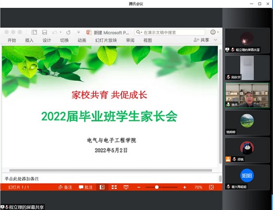 近日,电气学院线上召开2022届毕业生就业工作推进会、毕业生家长会,学院班子成员、教研室系主任、辅导员及毕业生家长参加会议。