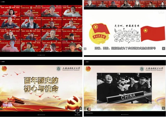 本次活动内容丰富、形式多样,在奏唱中国共产主义青年团团歌与重温入团誓词中,青年团员们精神饱满、斗志昂扬,再次重温宣誓时内心的激情澎湃。在回顾百年团史与“看图猜史”游戏环节中,团员们争相讲述每一幅照片后的感人故事,坚定了“高举团旗跟党走”的理想信念。在主题交流环节中,团员们围绕百年团史、初心使命、家国情怀、五四精神传承,结合疫情期间学习生活情况、志愿服务经历、劳动实践感想等方面,讲述了身边的感人事迹,激励上应青年学子以更加坚定的信心、昂扬的斗志、饱满的精神投入到疫情防控工作中。活动最后,与会师生共同观看191012D1/19101311班全体学生为抗疫而录制的加油视频,感受蕴含其中的浓浓上应情和坚定战疫心。