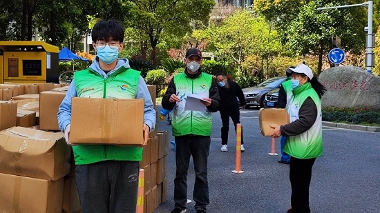 学院教工第一党支部副书记葛继平,除完成好教学工作外,他一直思考如何为抗疫做力所能及的事情。他第一时间在“先锋上海”报到,等待好几天没有接到电话,便主动到居委咨询,并把志愿者服务群信息置顶,一旦链接发布出来,抓紧填写,终于成功报名。葛继平负责小区物资运送的志愿服务,每天认真对快递表面喷洒消毒,然后将所有快递送到居民楼门口。小区现在只有一个大门,距离最远的居民楼还有几百米,尽管在戴口罩,穿防护服的情况下,来回运送快递比较闷热和辛苦,但看到邻居们欣喜地拿到所需物资时,他觉得一切辛苦都很值得。