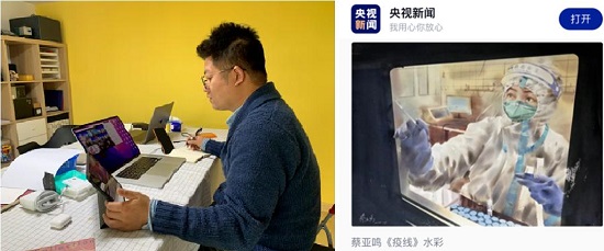 学院建筑学专业辅导员蔡亚鸣,从校园闭环管理那天起就一直与学生在一起,他积极带动学生就业,不间断与毕业班学生线上开会、与用人单位沟通、与任课老师交流;他积极为需要药品学生、考研学生、情绪有波动学生提供暖心帮助。抗疫期间,蔡亚鸣还拿起画笔,用艺术的语言投身抗疫,创作了《疫线》登上央视新闻,作品《战“疫”》得到行业专家和师生的认可,用画作向社会传递抗疫正能量。