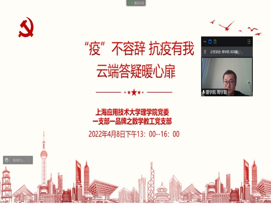 4月8日下午,数学教工党支部通过腾讯会议平台开展线上教研活动暨首次“云端答疑”活动。支部书记周学勤主持,介绍本次系列答疑具体安排,鼓励支部党员积极参与,力争做到有疑必答,有问必回,帮助大学生更好的完成线上学习和巩固,确保线上线下学习无落差,学习获得有增值。督导胡洪江对活动开展方式和老师们线上教学经验给予充分肯定,对如何做好“云端答疑”提出建设性意见和建议。