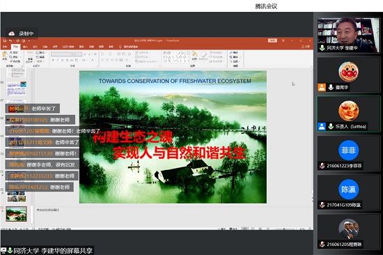 3月31日晚19:00点,生态学院线上举行“致远大讲堂”,邀请长江水环境教育部重点实验室副主任、同济大学东太湖水生态科学研究基地首席科学家、博士生导师李建华以“后黑臭时代,应如何构筑人与自然和谐共生的美丽河湖之魂”为题主讲。生态学院院长、博士生导师李法云教授主持。近300名师生在线聆听讲座。