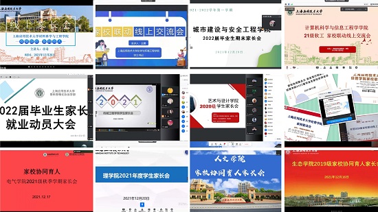 党委学工部、各学院(部)主动承担在家校协同育人过程中主导者的工作,积极探索家校协同教育的实施方案。12月,党委学工部组织大学生心理健康教育教师和辅导员面向全体家长开讲“家校协同育人视野下的大学生心理健康教育及心理危机干预”,通过讲解心理健康知识以及心理危机预防常识,引导家长树立正确教育观念,以健康和谐的家庭环境影响学生,进一步提升识别应对子女心理问题和危机干预的意识与能力;面对家长提出的意见建议,收集整理并妥善解决处理。各学院(部)共开展线上家长会近百场,向家长介绍学校的育人理念、学生的培养方案以及学生未来的发展方向与职业前景。