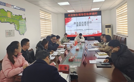 生态技术与工程学院党总支与区域化党建共建单位金汇镇新强村党总支开展“党的十九届六中全会精神”联组学习会,生态学院党总支书记曹扬、新强村党总支书记何晓丹出席,双方党员参加学习会。