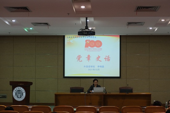 日前,外国语学院党总支书记李晓晶以《党章史话》为题,为全院师生党员上了一堂生动的党史课。此次党课也是学校“百名书记讲党史”活动之一。