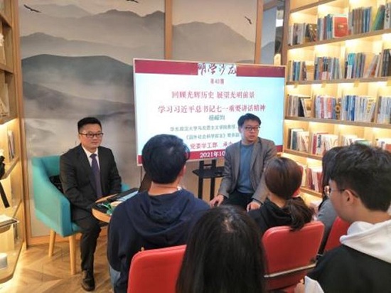 10月20日,由党委学工部主办、计算机学院承办的校第40期明学沙龙“回顾光辉历程 展望光明前景——学习习近平总书记七一讲话精神”举行。华东政法大学马克思主义学院教授、博士生导师,《国外社会科学前沿》常务副主编杨嵘均应邀主讲。