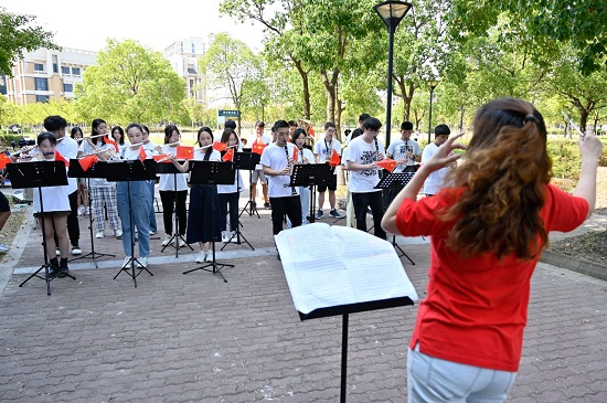 《我爱你,中国》是一首典型且脍炙人口的红色曲目,活动现场,悠扬的演奏声、校管乐团队员们投入的表演引得校园里不少师生围观,有的驻足聆听,有的一起哼起了熟悉的调子……活动用快闪演出的方式,让青年大学生广泛参与,丰富党史学习教育的形式,抒发青年大学生对党和祖国的热爱和祝福;同时,将“快闪”与党史学习教育相结合,在演奏中回顾党史、新中国史,展现了当代青年爱党、爱国、爱校的青春热忱,进一步营造党史学习教育的浓厚氛围。