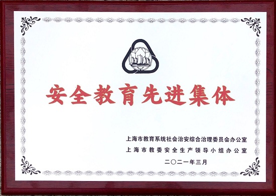一直以来,安全保卫处高度重视学生安全教育工作,充分发挥安全育人功能,采取多种形式的安全教育活动,收到良好效果,为平安校园建设奠定了基础。2021年被上海市教育系统社会治安综合治理委员会办公室、上海市教委安全生产领导小组办公室授予“安全教育先进集体”荣誉称号。
