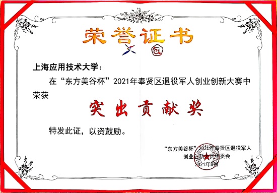 8月18日,由上海市退役军人事务局、奉贤区人民政府指导,奉贤区退役军人事务局和东方美谷企业集团股份有限公司联合主办的“戎归贤城跟党走,红色筑梦创未来——‘东方美谷杯’2021年奉贤区退役军人创业创新大赛”落下帷幕,我校退伍学生组成的多支创业创新参赛团队荣获多项二、三等奖与优胜奖,学校荣获“突出贡献奖”。