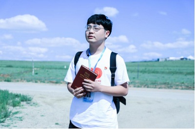 假期张于波参加了上海高校“行走祖国”主题活动,内蒙古自治区资助宣讲结束后返乡的他在看到家乡受灾情况后,便决定要为家乡做些什么。在了解到家乡部分地区学生分散、教育资源不均衡的情况后,想到暴雨灾害更是给不少刚刚脱贫的家庭雪上添霜时,他立刻主动进村入户讲解,结合自己制作的宣传手册,向受灾的准大学生们介绍国家、学校的助学贷款、绿色通道政策等助学政策。
