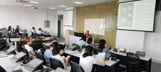 “课程思政”参训人员代表应用英语系严明、应用德语系郑俊、公共外语教研二室徐晗等三位老师结合参训学习情况,从课程思政的内涵、课程思政元素的提取、课程思政在教学中设计原则与方法等方面进行了详细阐述。另外,应用英语系霍艳娟结合《“课程思政”引领语言与育人融合的英语教学研究》项目,详细介绍如何体现外语类课程特色、突出重点,传承红色基因、树立文化自信,提升课程思政育人功能的具体途径。