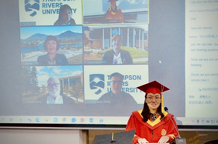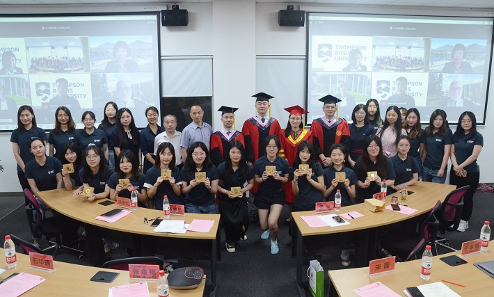 近日,上海应用技术大学与加拿大汤姆逊大学合作办学项目市场营销专业2021届本科毕业生毕业典礼在线举行,校党委副书记、副校长王瑛出席并致辞,加拿大汤姆逊大学副校长查白桦(Baihua Chadwick)等外方嘉宾通过Zoom平台在线参会。国际交流处处长陈青长,经管学院党政班子成员、中加合作项目团队及部分教师代表和学生代表现场参会。