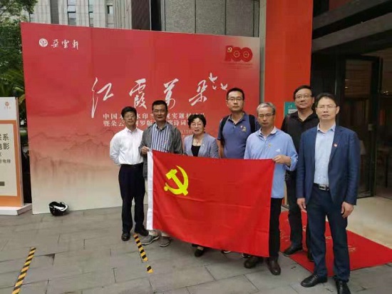 在朵云艺展,支部党员们观看了《红霞万朵-中国木板水印当代题材精品暨毛泽东诗词墨迹展》。展览分为“山河颂歌”、“逐梦前行”、“绿水青山”、“激扬文字”“伟大复兴”五大篇章,展览充分反映了祖国建设新貌、美丽山川以及英雄人物形象,展现了中国共产党义无反顾肩负起为中国人民谋幸福、为中华民族谋复兴的初心和使命。
