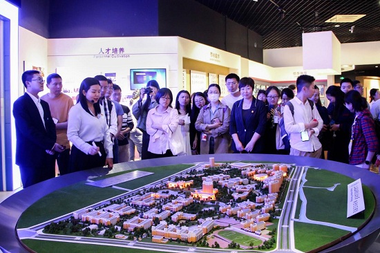 校史馆分为序馆、历程馆、新校馆和专题馆四个部分。新进教师依次参观四个展馆,深入了解学校六十七年的发展历程,切身感受上应大的沧桑与辉煌。