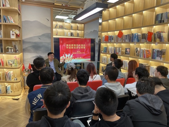 陈鹏以习近平总书记关于党的历史的重要论述为指导,从横向和纵向两个角度回顾和概括了党的百年历史,系统梳理了不同历史时期我们党面临的紧要关头和做出的重要抉择,围绕中国共产党百年历史中的重大事件进行了深入浅出的讲解。他表示,党的百年历史带给我们至少十个方面的启示,其中最主要的启示就是要“不忘初心、牢记使命”。他号召广大青年学生要传承红色基因,结合所学专业,将个人发展融入祖国需求,树立远大理想。整场报告史料翔实、思想深刻、内涵丰富,赢得了在场师生的热烈掌声和广泛共鸣。