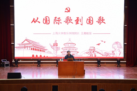 4月14日,校党委学工部举行学生党史学习教育专题音乐党课《从国际歌到国歌》,邀请上海大学音乐学院院长王勇教授主讲。学校全体专兼职辅导员、党委学工部、团委全体人员及学生代表共同聆听党课。