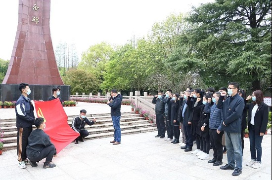 4月8日,机关第九党支部与艺术学院学生党支部、校退伍大学生协会来到奉贤区烈士陵园,联合开展党史学习教育暨庆祝建党100周年教育实践活动。